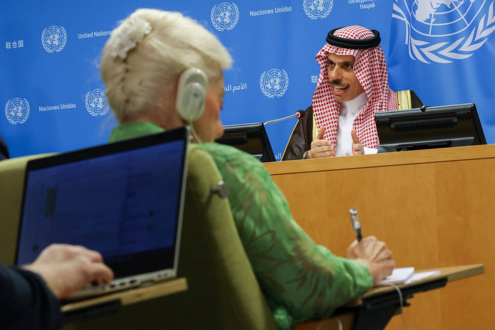 فیصل بن فرحان، وزیر خارجه عربستان سعودی، در سخنرانی خود در این کنفرانس، از همه کشورها خواست از هدف این نشست برای تهیه نقشه راهی که ضوابط تشکیل کشور فلسطین را در عین تضمین امنیت اسرائیل مشخص می‌کند، حمایت کنند.