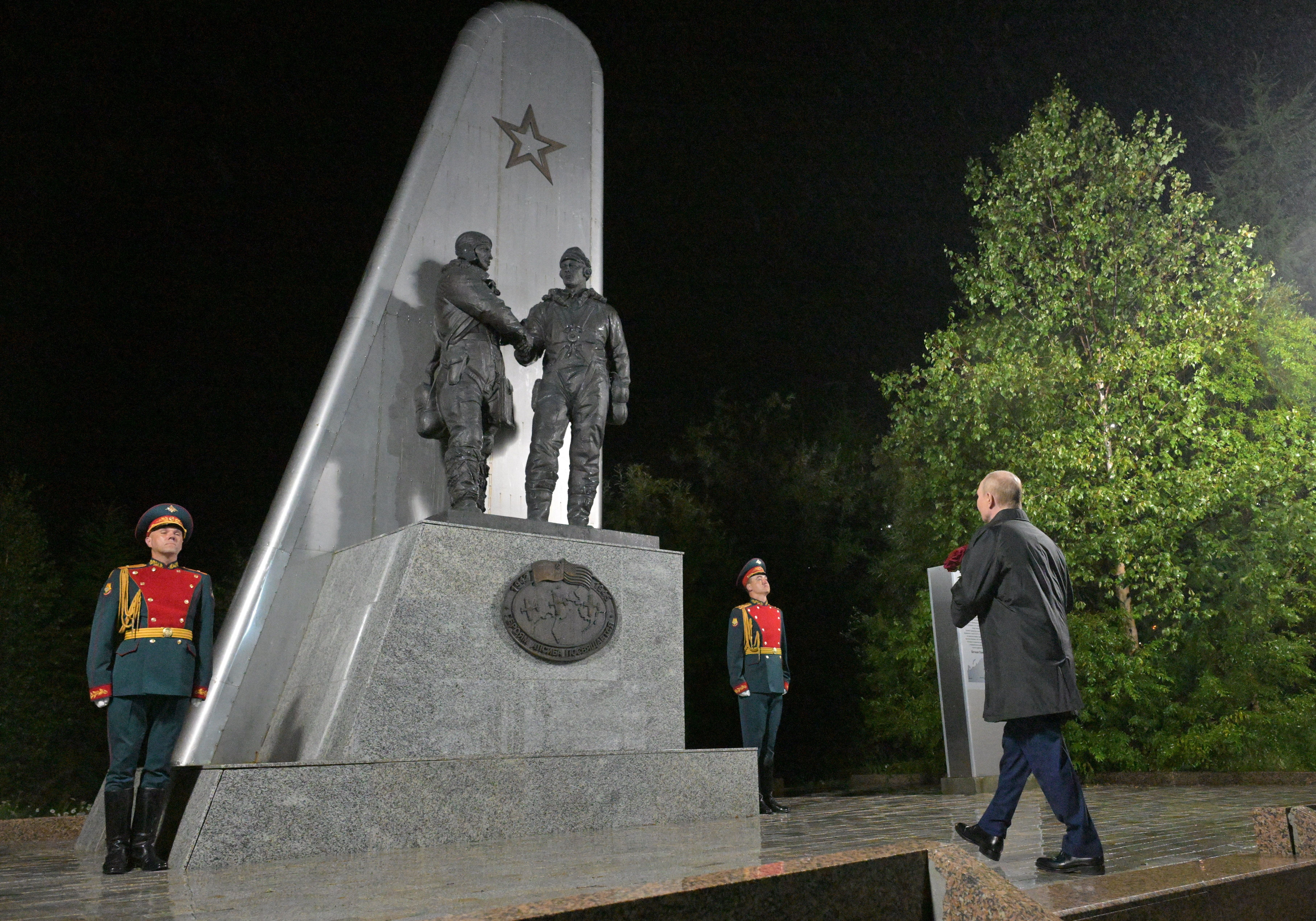 در مسیر سفر به آلاسکا، پوتین در شهر ماگادان توقف کرد و از یک کارخانه صنعتی بازدید کرد، ریاست یک نشست دولت محلی را بر عهده گرفت و در یک زمین هاکی با دانشآموزان دیدار کرد.