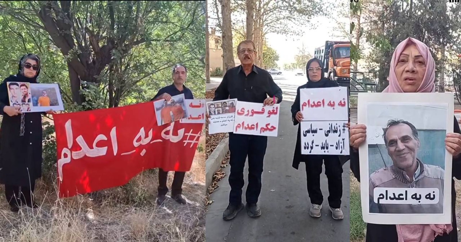 تصاویر و ویدیوهای منتشر شده در شبکههای اجتماعی نشان میدهد خانوادههای زندانیان سیاسی محکوم به اعدام در تهران، سهشنبه ۱۱ شهریور تصاویری از زندانیان سیاسی محکوم به اعدام و پلاکاردهایی با شعارهای «نه به اعدام»، «لغو فوری حکم اعدام» در دست گرفتند.