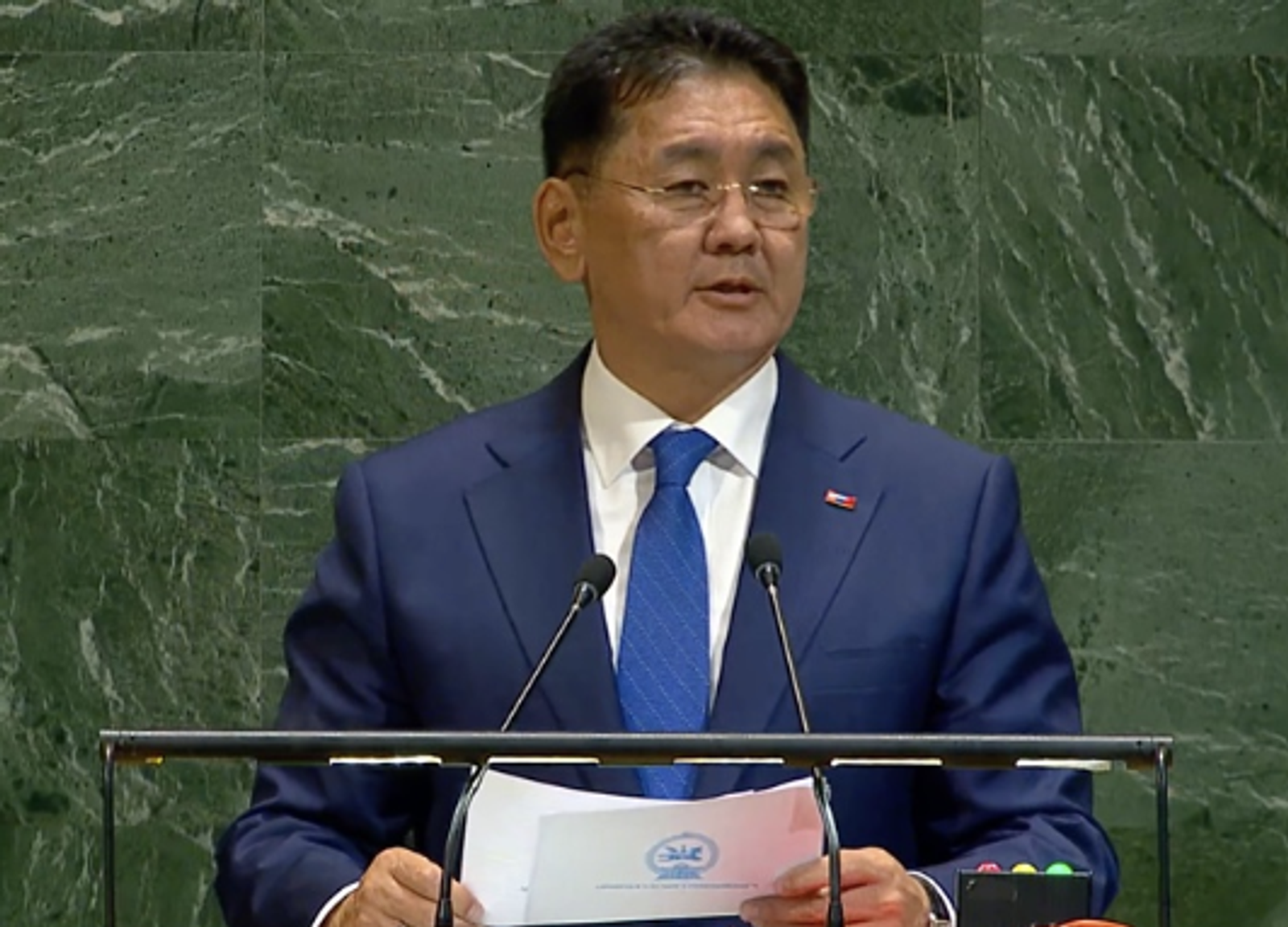 اوخناگین خورلسوخ، رییس‌جمهوری مغولستان، در مجمع عمومی سازمان ملل گفت کشورش طی بیش از دو دهه ۲۳ هزار نیروی صلح‌بان به ۱۶ ماموریت سازمان ملل اعزام کرده و همواره جزو ۲۰ کشور اصلی مشارکت‌کننده بوده است. او تاکید کرد مغولستان به حمایت از صلح جهانی ادامه می‌دهد.
