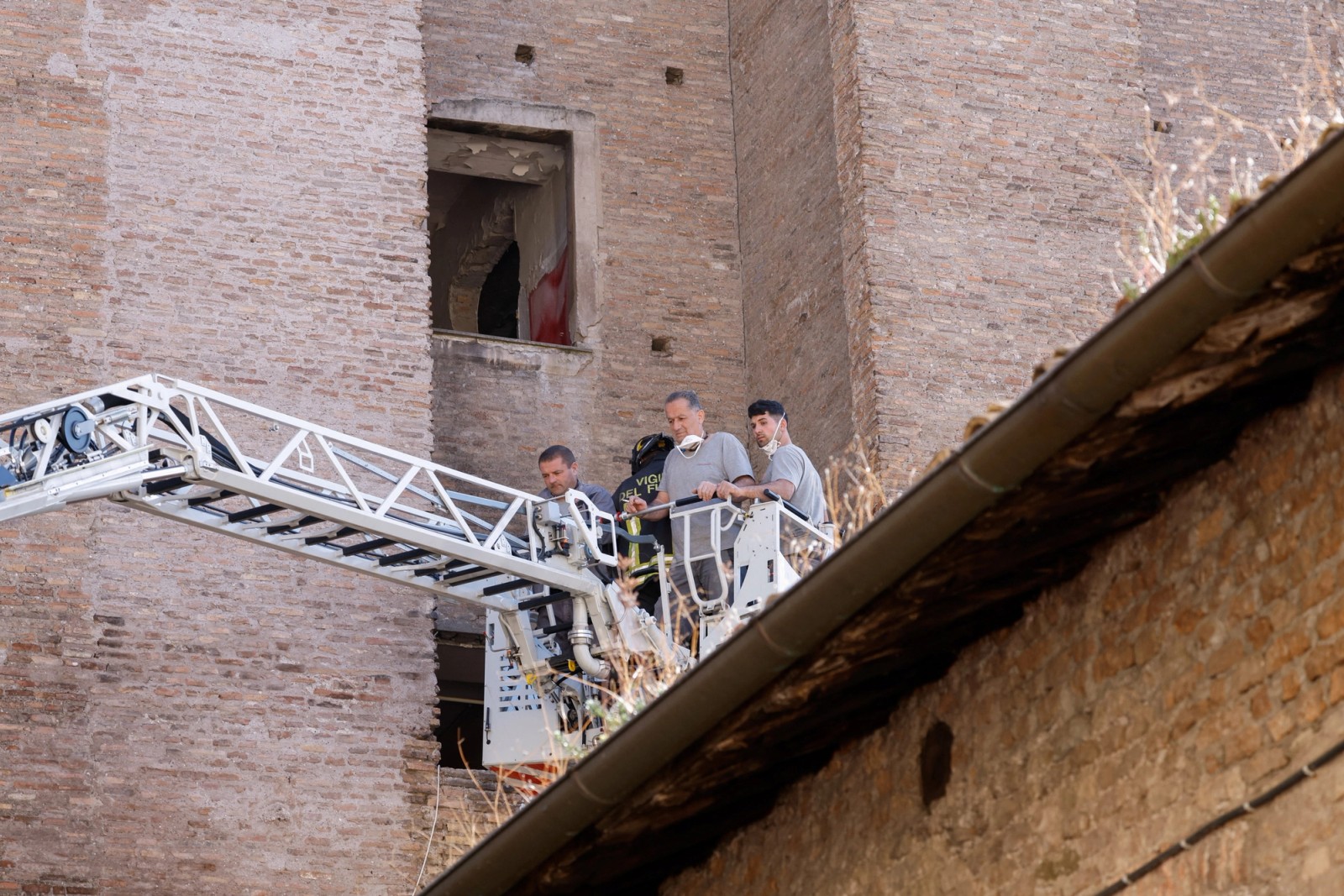 • تلاش آتش‌نشانان رم برای نجات کارگری که زیر برج فروریخته قرون‌وسطایی گرفتار شده است