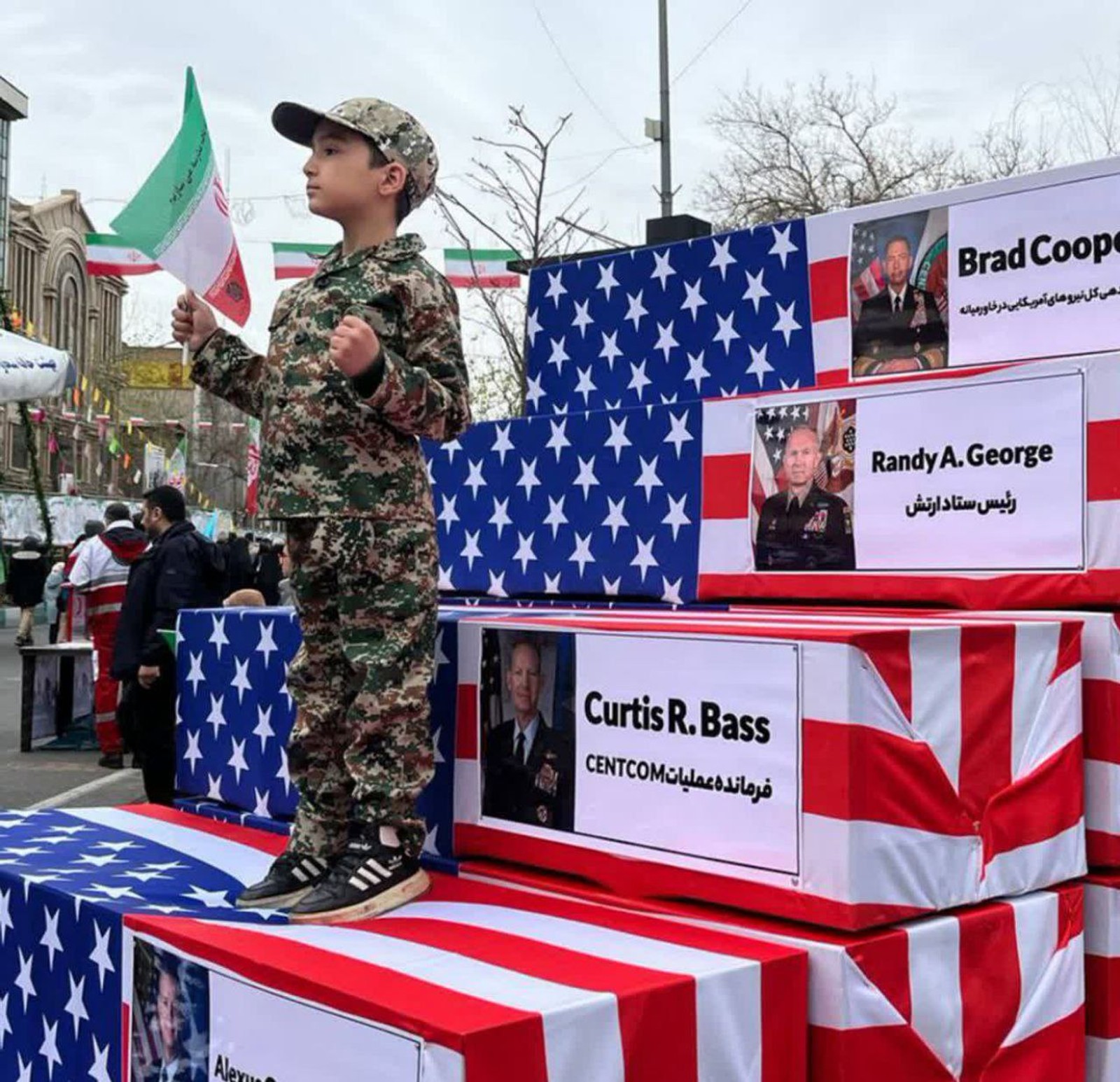 عکس یادگاری با تابوت فرماندهان ارشد آمریکا در مراسم «۲۲ بهمن»
