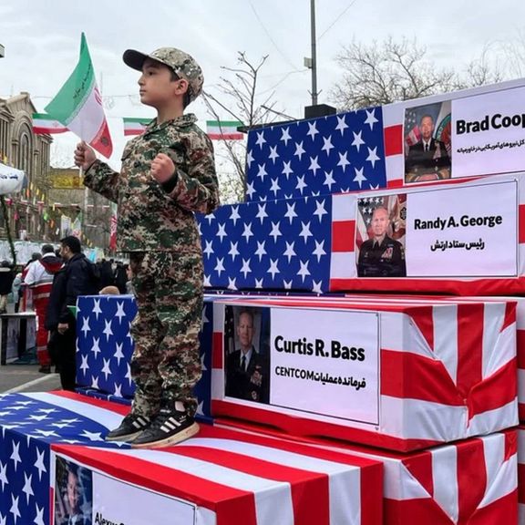 رسانههای ایران تصاویری از مراسم حکومتی ۲۲ بهمن در تهران منتشر کردند که نشان میدهد برگزارکنندگان در محل برگزاری این مراسم ماکت تابوتهایی با پرچم آمریکا و تصاویر فرماندهان ارشد ارتش این کشور نصب کرده بودند و شرکتکنندگان حامی حکومت با آنها عکس میگرفتند.