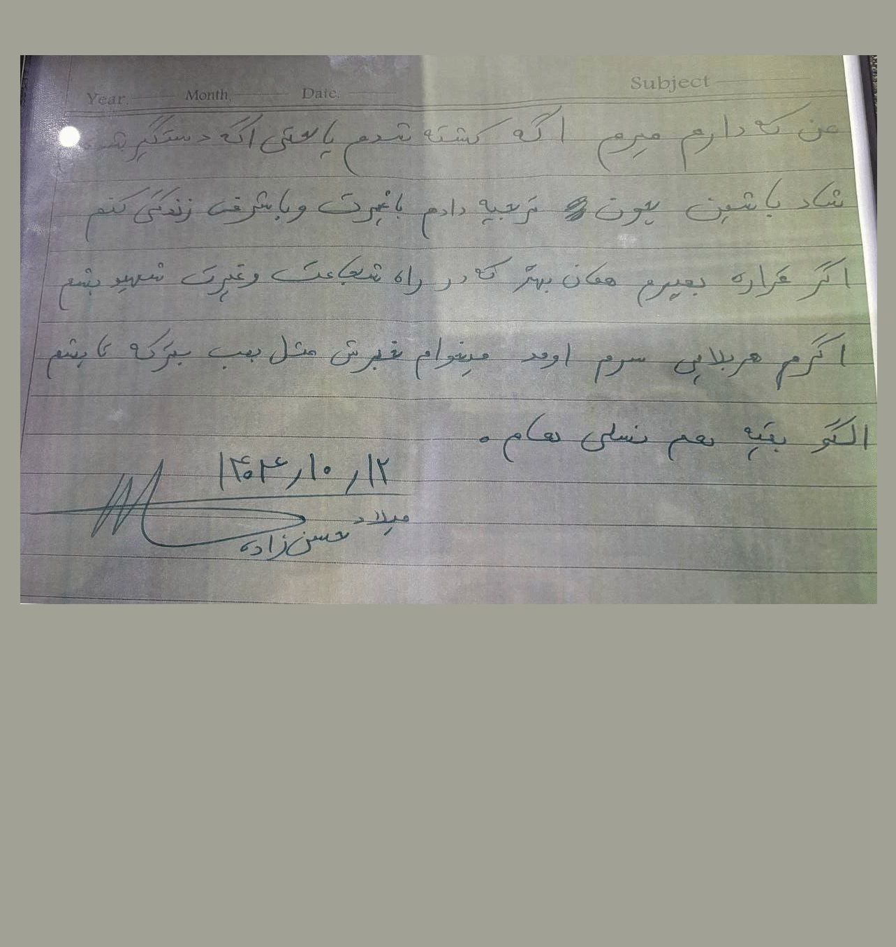 وصیت‌نامه میلاد حسن‌زاده: اگر کشته شدم، بدانید ترجیح دادم باشرف باشم