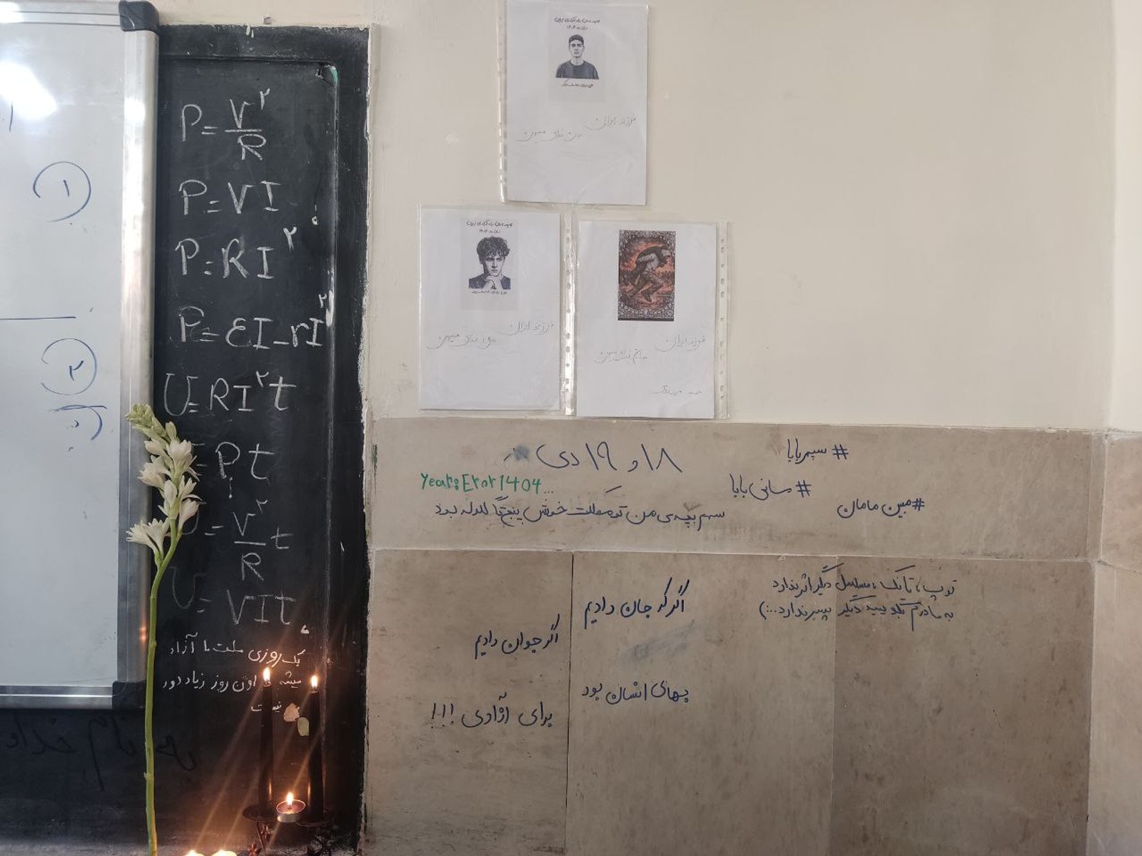 همزمان، تصاویر رسیده به ایراناینترنشنال نشان میدهد دانشآموزان در مدارس، چهلم جاویدنامان ایران را با دیوارنویسی و انتشار تصاویر آنان گرامی داشتند.