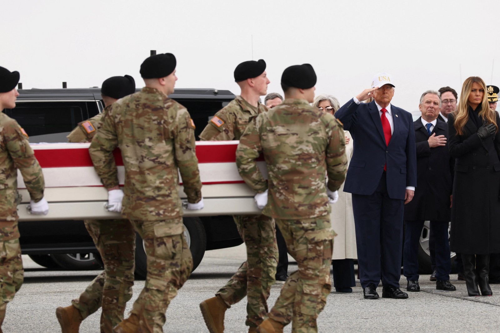 تصاویر منتشرشده نشان می‌دهد تابوت‌های پوشیده‌شده با پرچم آمریکا در پایگاه نیروی هوایی دوور از هواپیما پایین آورده شدند و ترامپ در برابر آنها ادای احترام نظامی کرد.