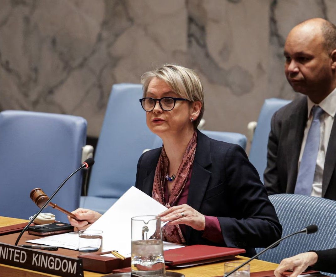 ایویت کوپر، وزیر خارجه بریتانیا در جلسه مجازی وزیران خارجه بیش از ۴۰ کشور، اقدامات جمهوری اسلامی را «بی‌احتیاطی» خواند و گفت این اقدامات به امنیت اقتصاد جهانی ضربه می‌زند. کوپر گفت که «نیاز فوری» برای بازگرداندن آزادی ناوبری کشتی‌های بین‌المللی از طریق تنگه هرمز وجود دارد.