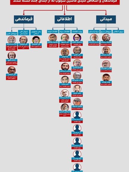 در راس هرم تصمیمگیری درباره سرکوب ایرانیان، علی خامنهای که برای ۳۶ سال فرمان سرکوب صادر میکرد، در ساعات اولیه حملات در ۹ اسفند کشته شد.