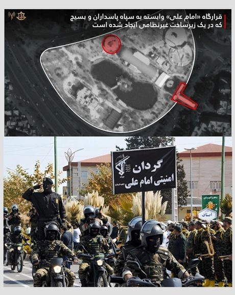 علاوه بر این، پایگاههای بسیج با گردانهای موتوری «امام علی» که از سال ۸۸، برای ایجاد رعب و وحشت در اعتراضات و پشتیبانی از سایر نیروها مورد استفاده قرار میگیرند، مرتبط هستند.
