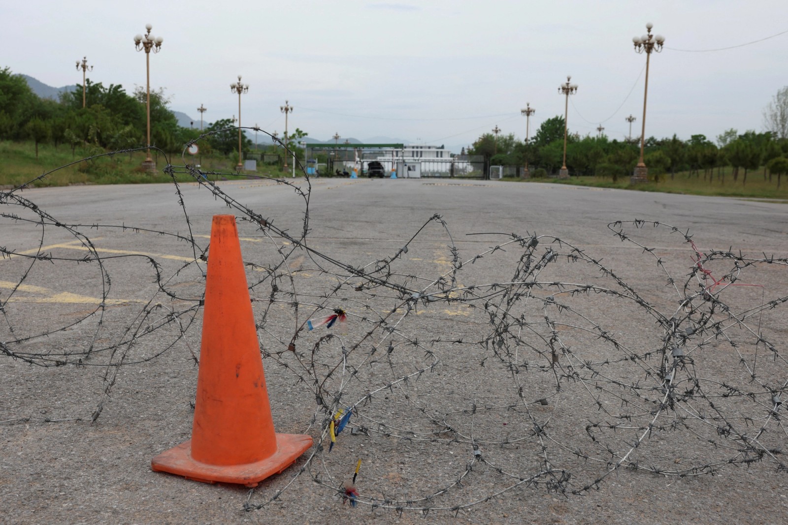 سیمهای خاردار در نزدیکی هتل سرنا، محل برگزاری مذاکرات قبلی نصب شد.