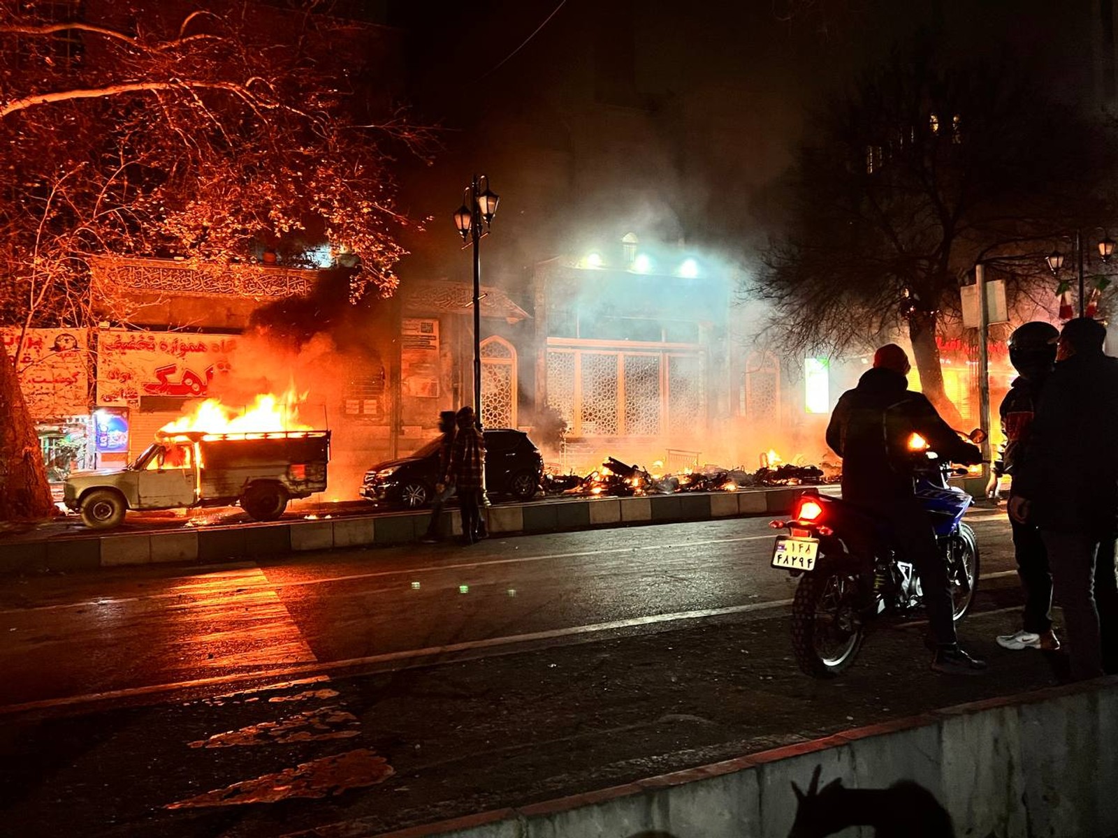 بررسی ویدیوهای مرتبط با اعتراضات ۱۸ دی ماه در نزدیکی مسجد جامع قلهک از سوی ایراناینترنشنال نشان میدهد که این مسجد در این تاریخ دچار آتشسوزی نشده است و صرفا موتورسیکلتها و خودرویی که عوامل سرکوب با استفاده از آنها به معترضان حمله میکردند، در آتش میسوزند.