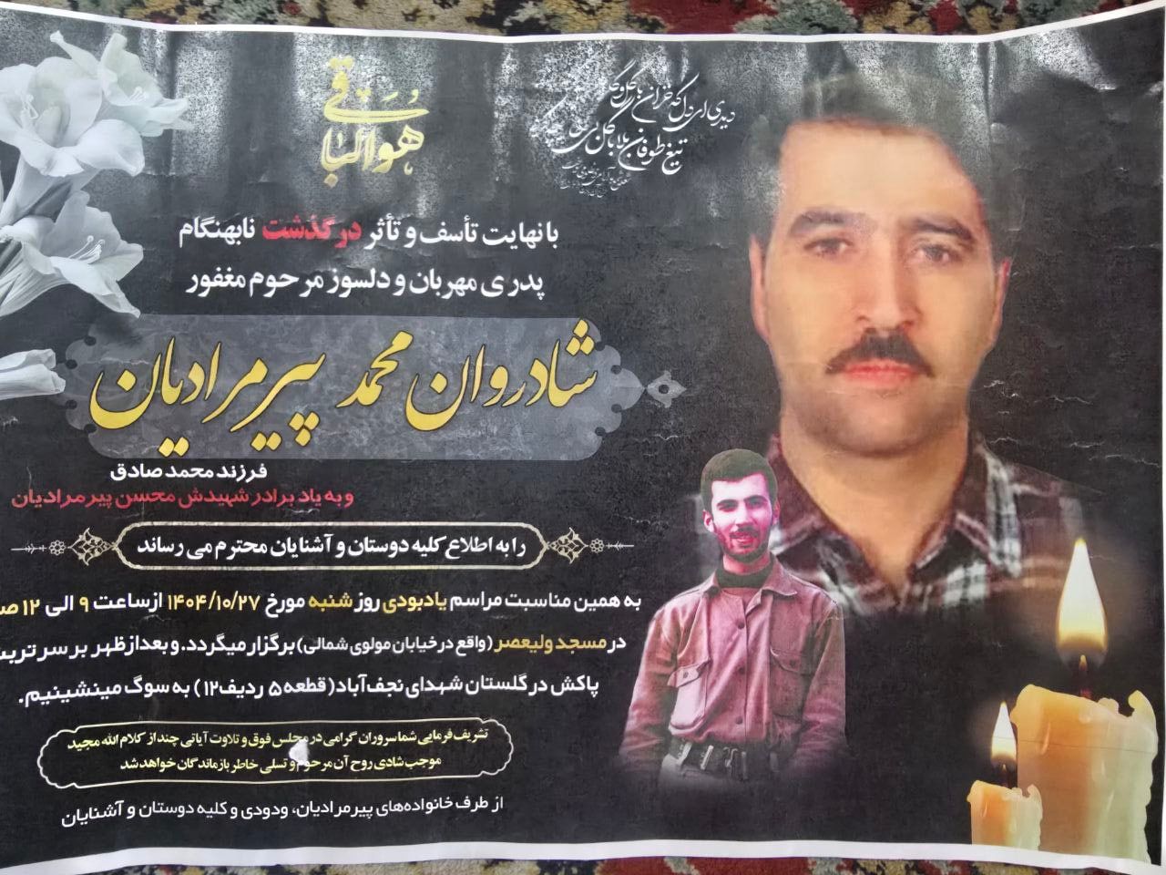 اطلاعات رسیده به ایراناینترنشنال حاکی از آن است که محمد پیرمرادیان با شلیک تیر خلاص به ناحیه پیشانی کشته شد.