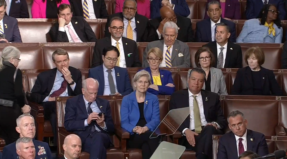 این اظهارات ترامپ، موج دیگری از خروج نمایندگان دموکرات از صحن مجلس را به دنبال داشت، اما وارن در حالی که نگاهش را به ترامپ دوخته بود، همچنان به تشویق اوکراین ادامه داد.